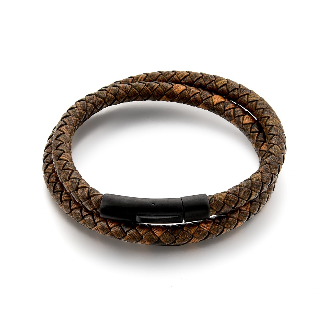 Round dark brown wrap genuine leather design, with a black steel clasp